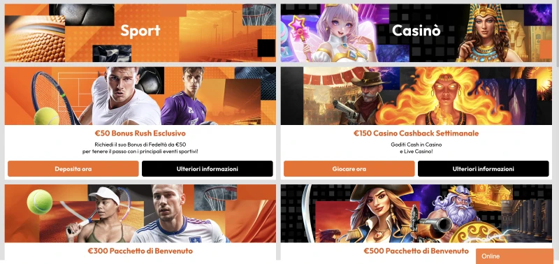 I bonus sportsbook sono separati dalle offerte casinò, così puoi scegliere ciò che si adatta alla tua attività . Ogni promo sportiva mostra il deposito richiesto e le eventuali regole bonus nell’area bonus della sportsbook. Questo rende i premi casinò e sport di OptimBet facili da tracciare.